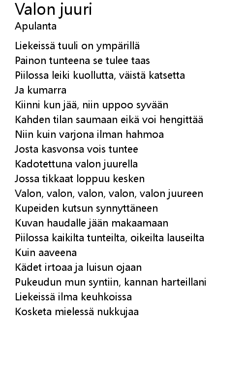 | Piilossa kaikilta tunteilta, oikeilta lauseilta | |