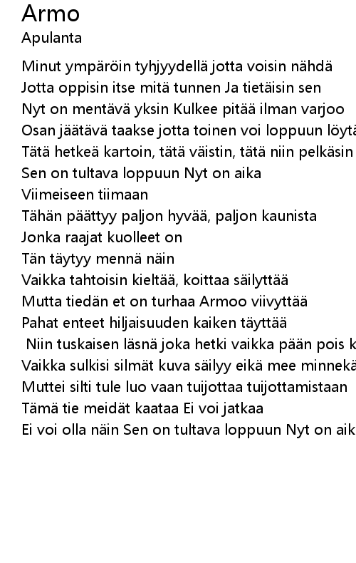 | Mutta tied n et on turhaa Armoo viivytt | |