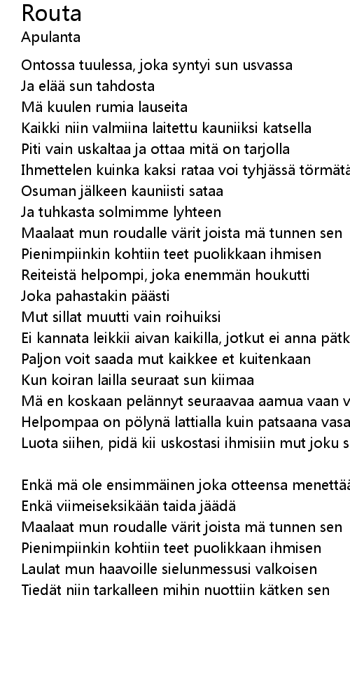 | Maalaat mun roudalle v rit joista m tunnen sen | |