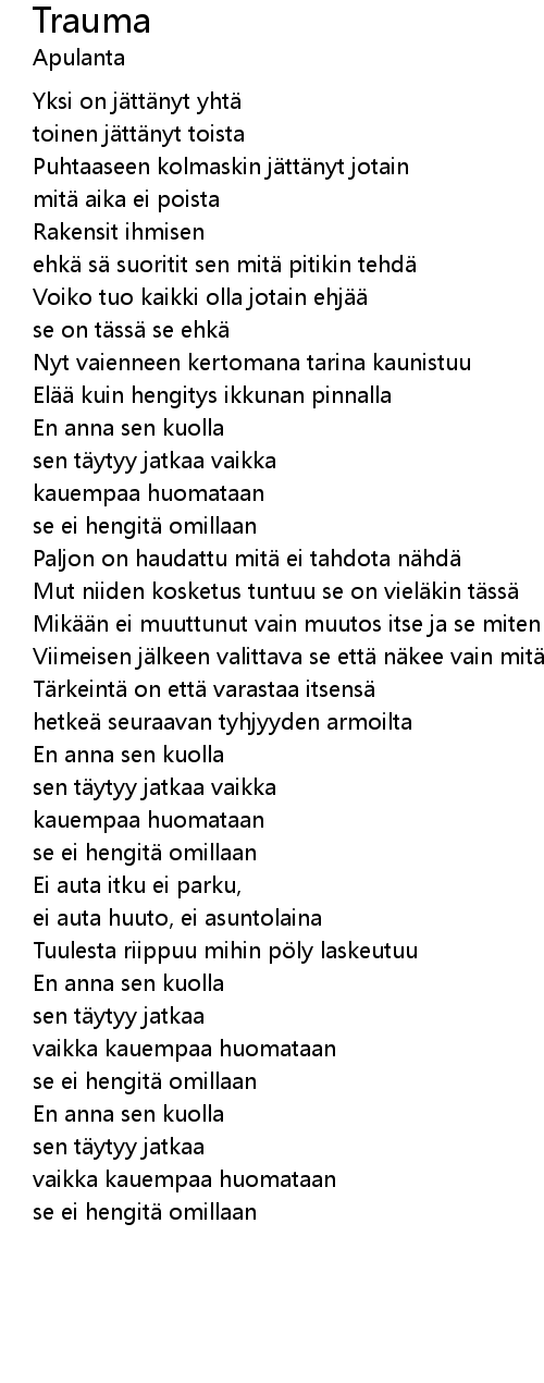 | Mut niiden kosketus tuntuu se on vieläkin tässä | |