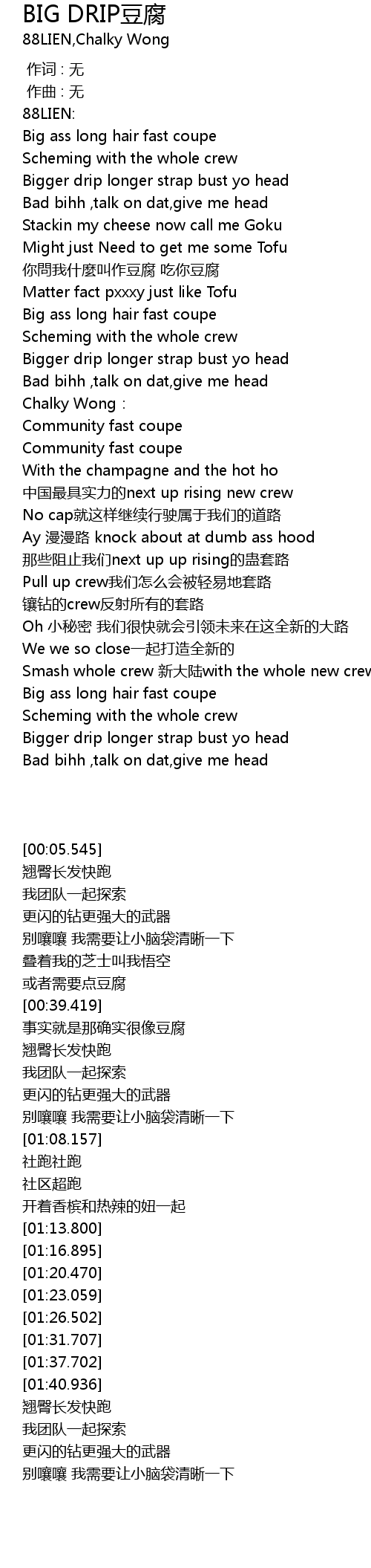 | 歌曲 | BIG DRIP豆腐 |