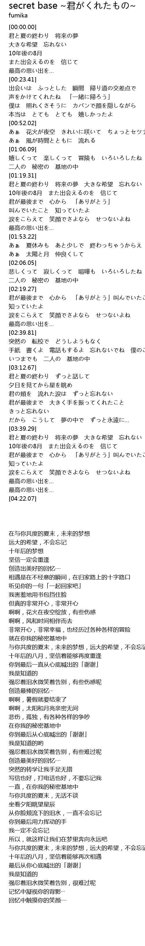 | [03:06.18] | 一直,在你我的秘密基地中 |