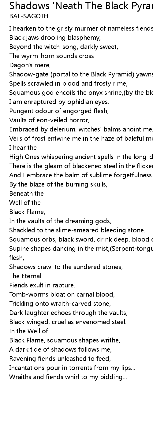 Squamous god encoils the onyx shrine,(by the bleeding stone) |