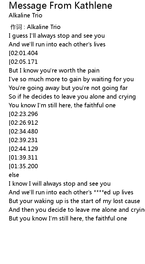 | [00:00.00] | zuò cí : Alkaline Trio |