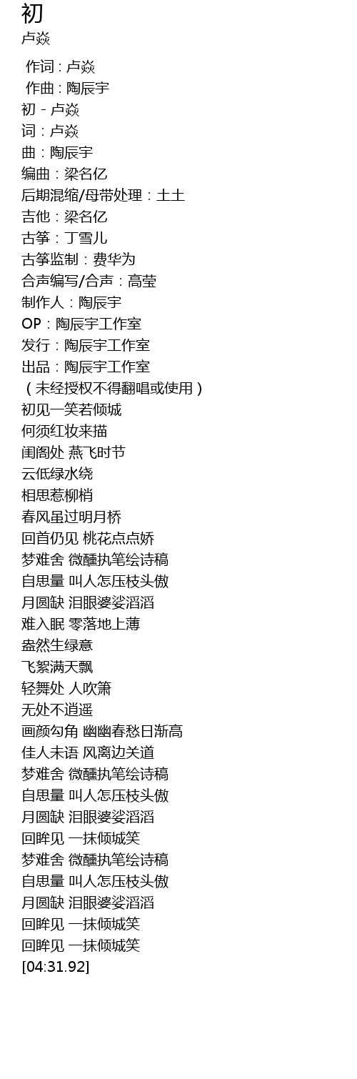 | [04:12.42] | 回眸见 一抹倾城笑 |