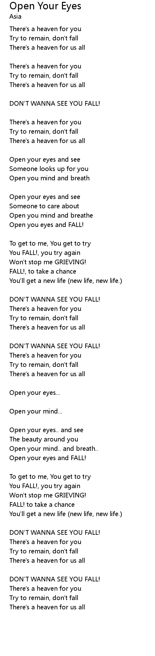 | Open your eyes and FALL! | |