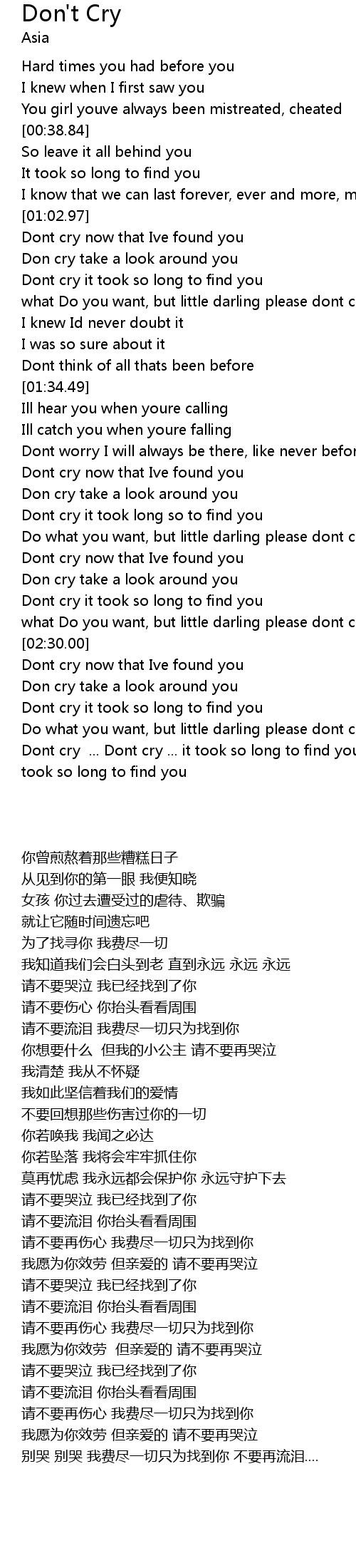 Dont cry ... Dont cry ... it took so long to find you Dont cry ... it took so long to find you |