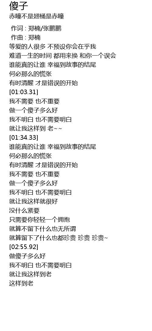 | [03:01.64] | zuò shǎ zi duō me hǎo |