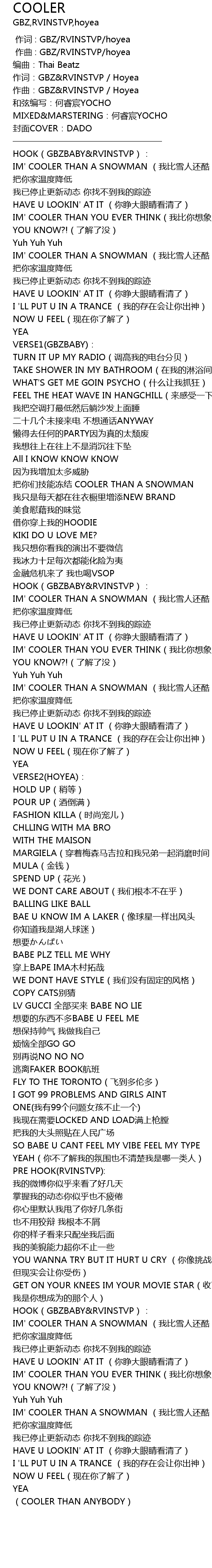 | [02:50.319] | IM' COOLER THAN A SNOWMAN wo bi xue ren hai ku |