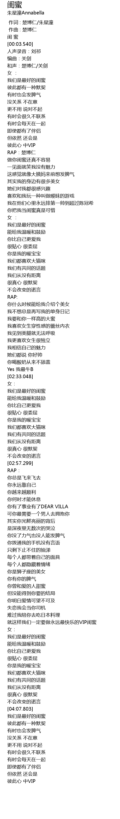 | [03:45.801] | 我们是最好的闺蜜 |