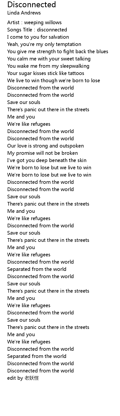 | [00:35.64] | Your sugar kisses stick like tattoos |