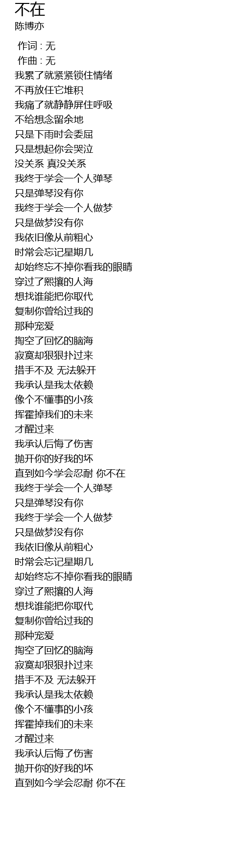 | [00:47.686] | zhǐ shì tán qín méi yǒu nǐ |