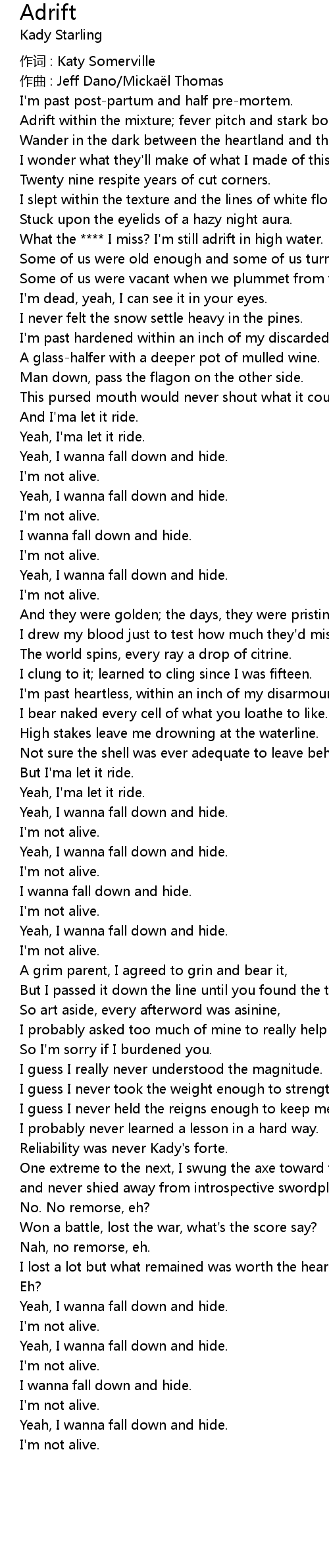 | I'm past heartless, within an inch of my disarmoured lies. | |