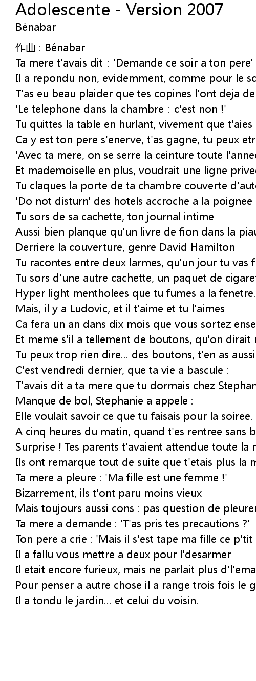 | 作曲 : Bénabar | |