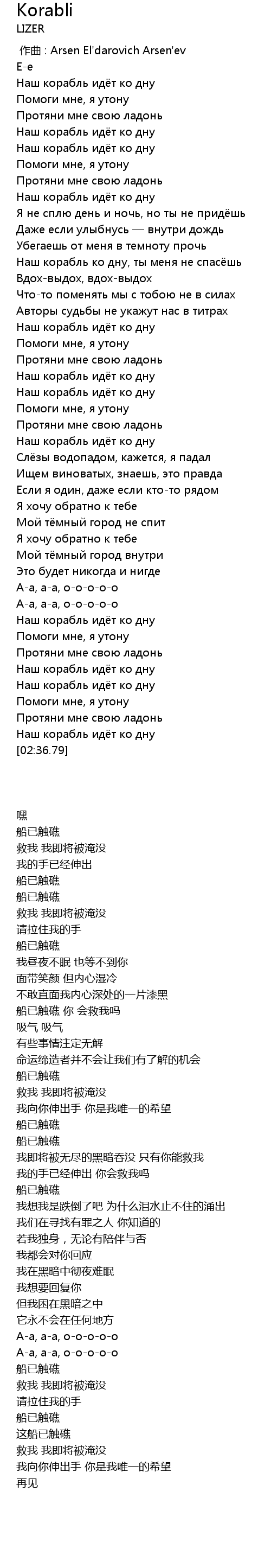 | [00:45.13] | Наш корабль ко дну, ты меня не спасёшь |