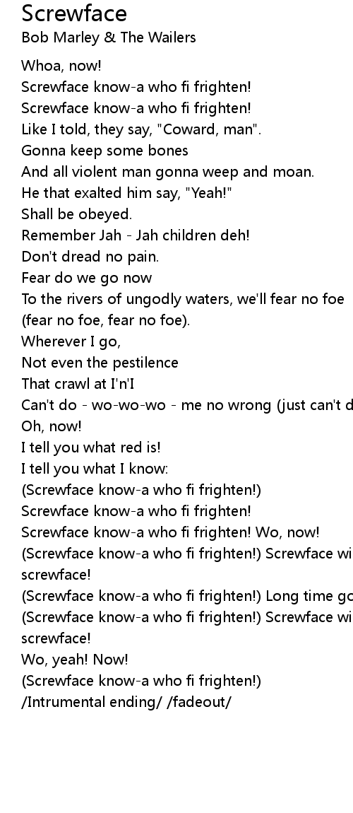 (Screwface know-a who fi frighten!) Screwface will frighten |