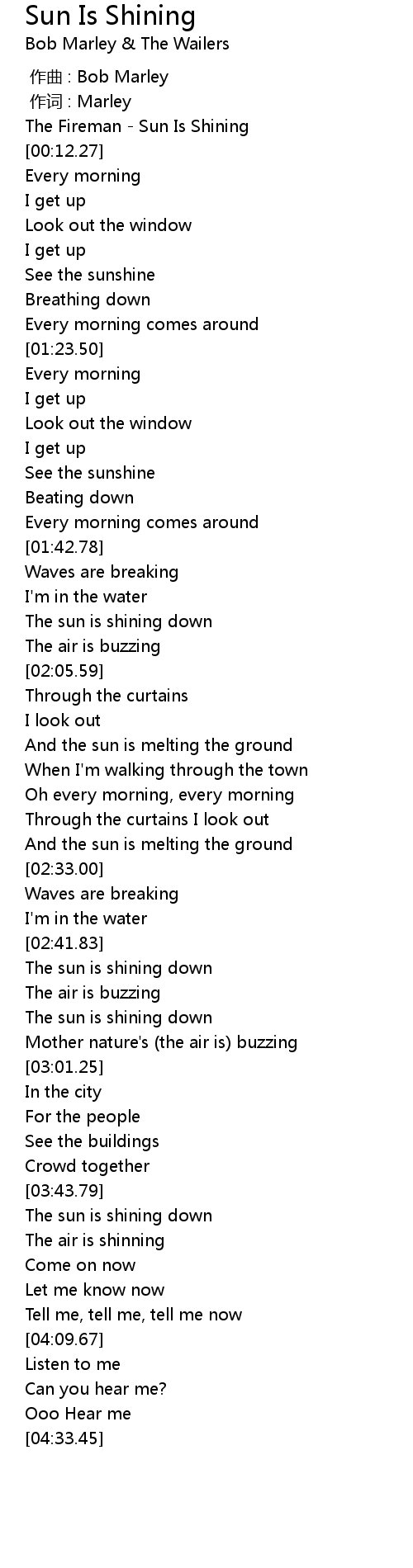 | [01:53.27] | The sun is shining down |