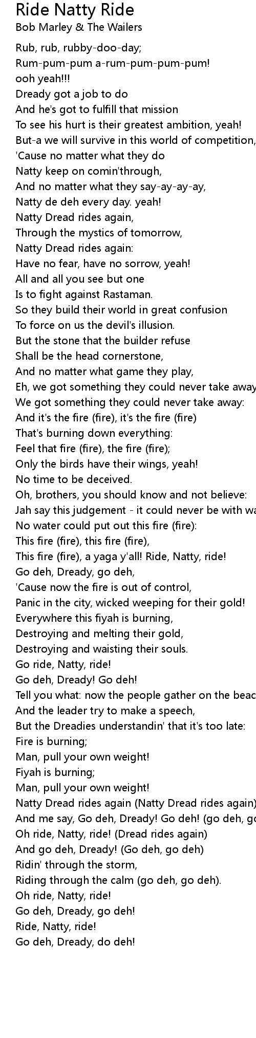 This fire (fire), a yaga y'all! Ride, Natty, ride! |