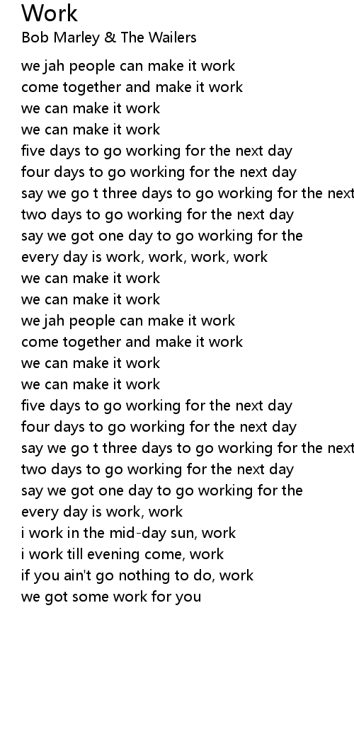 every day is work, work, work, work |