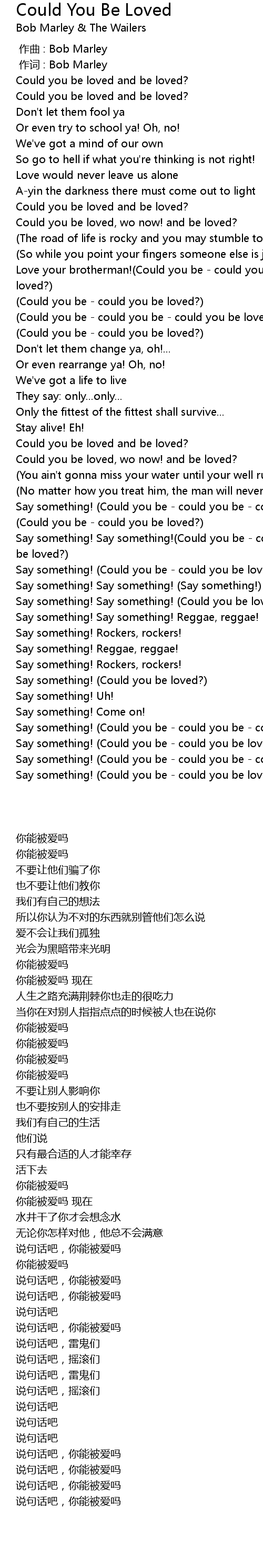 | [03:44.60] | Say something! (Could you be - could you be - could you be loved?) |