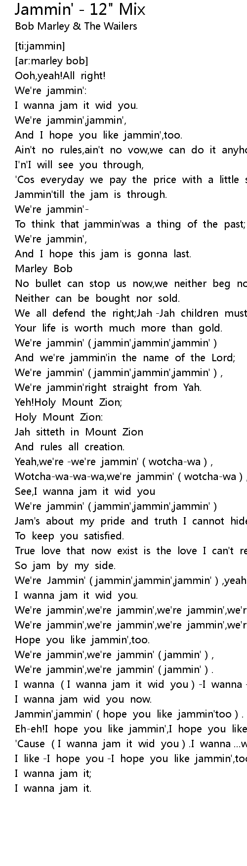 | [02:48.201] | Jammin',jammin'(hope you like jammin'too). |