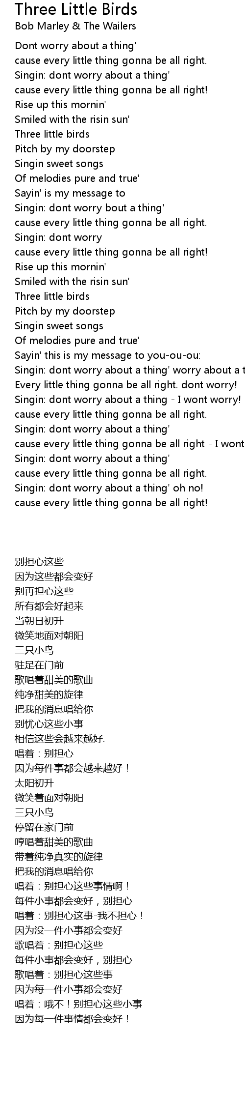 Singin: dont worry about a thing' |