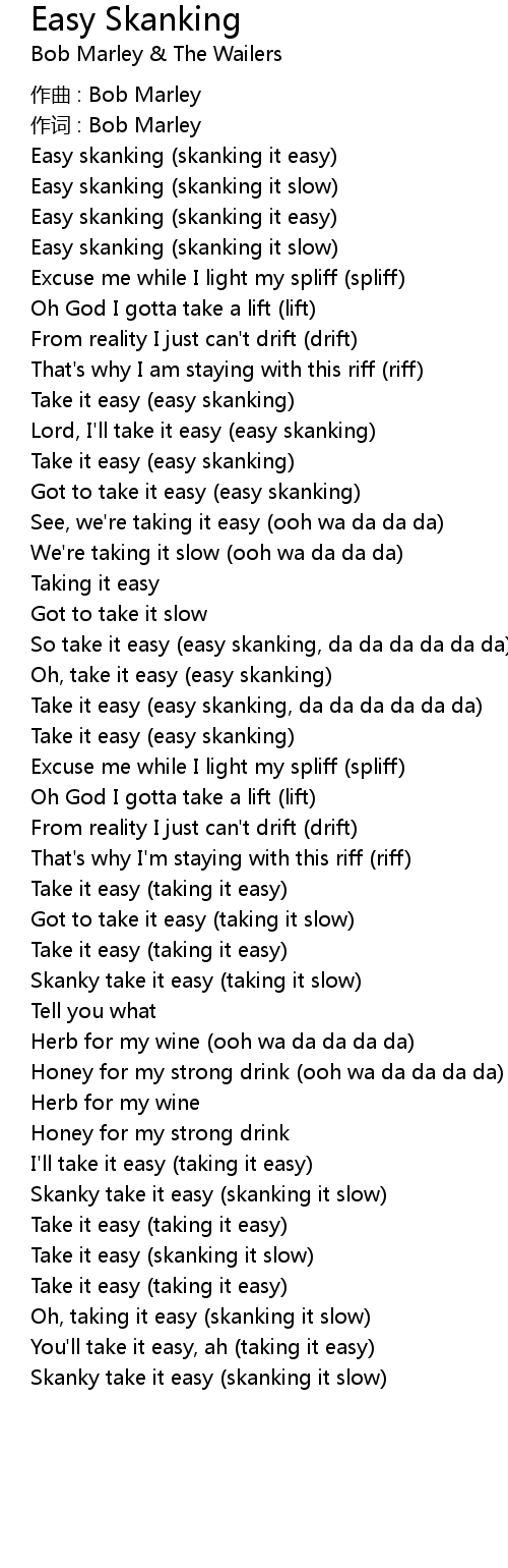 | So take it easy easy skanking, da da da da da da | |