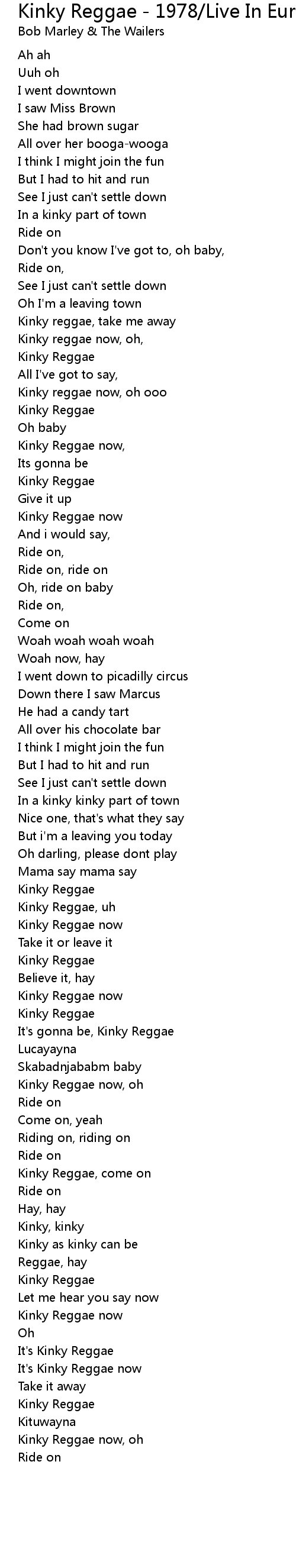歌曲 Kinky Reggae - 1978/Live In Europe