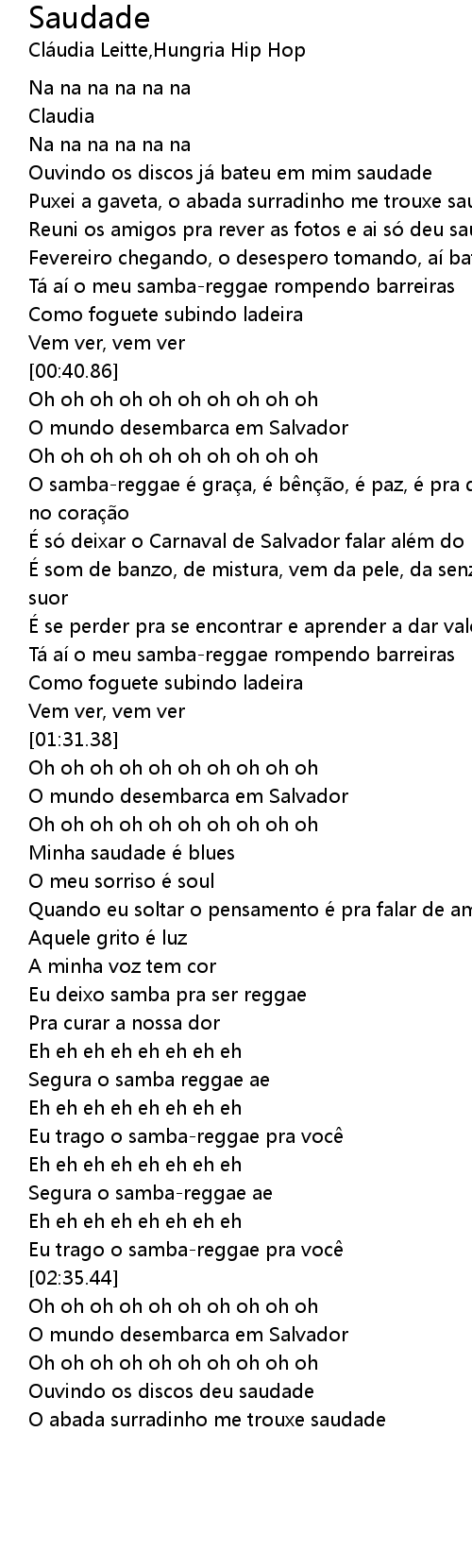 | [01:22.01] | Tá aí o meu samba-reggae rompendo barreiras |