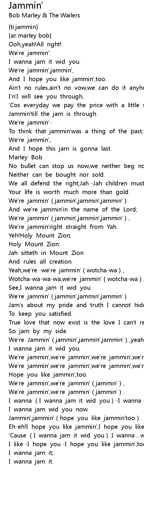 | [02:48.201] | Jammin', jammin' hope you like jammin' too. |