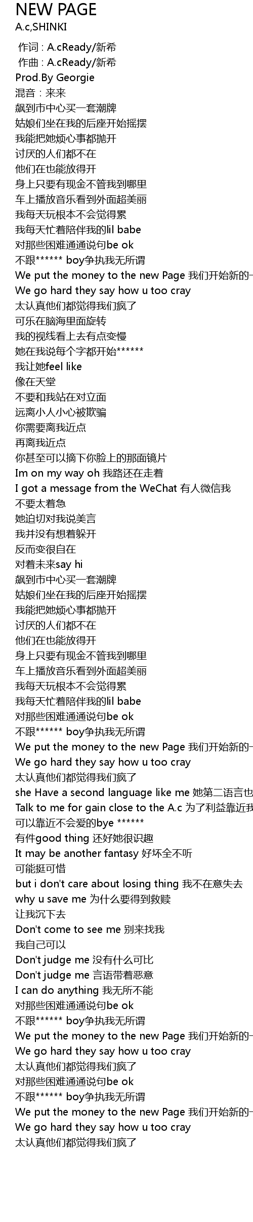 | [02:50.12] | We put the money to the new Page wo men kai shi xin de yi ye |