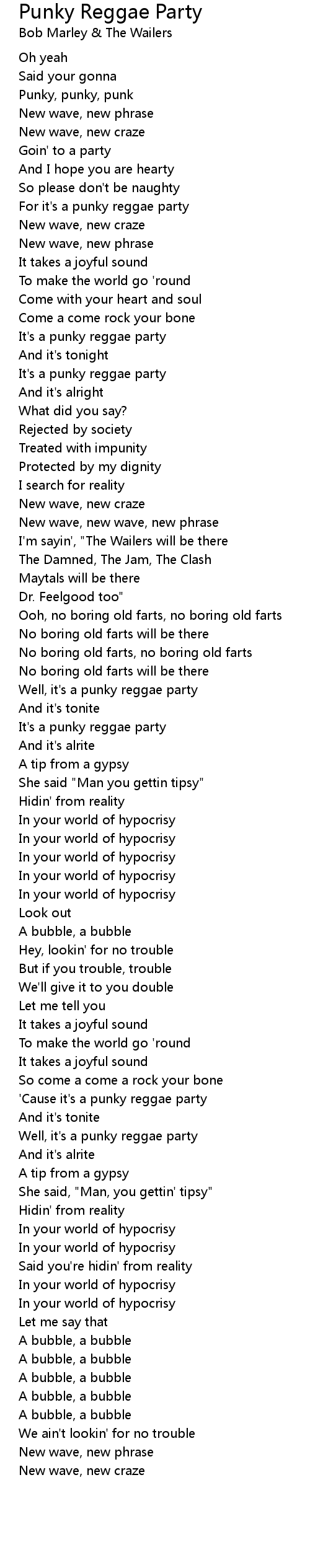 For it's a punky reggae party |