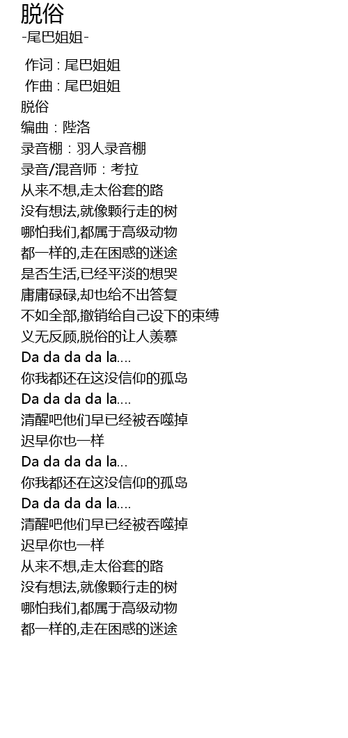| [00:00.000] | 作词 : 尾巴姐姐 |