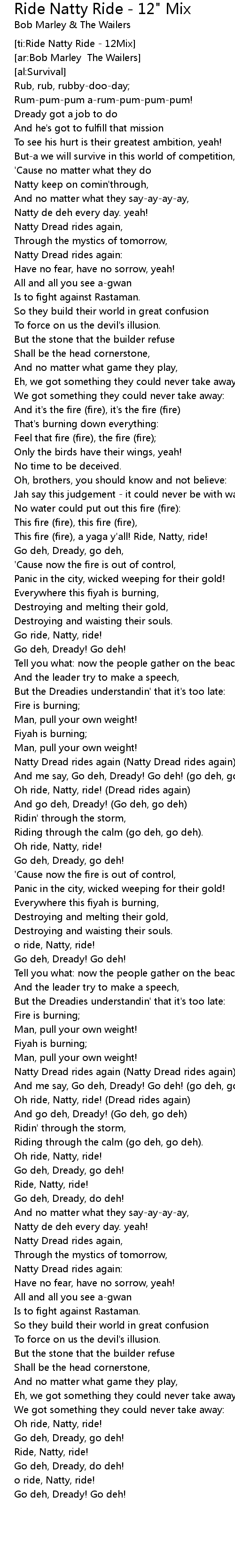 [03:18.40] Oh ride, Natty, ride! (Dread rides again)