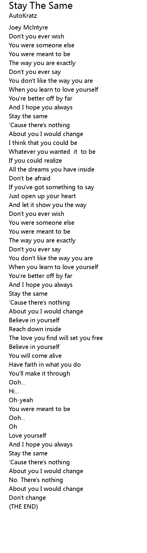 Stay The Same 歌词