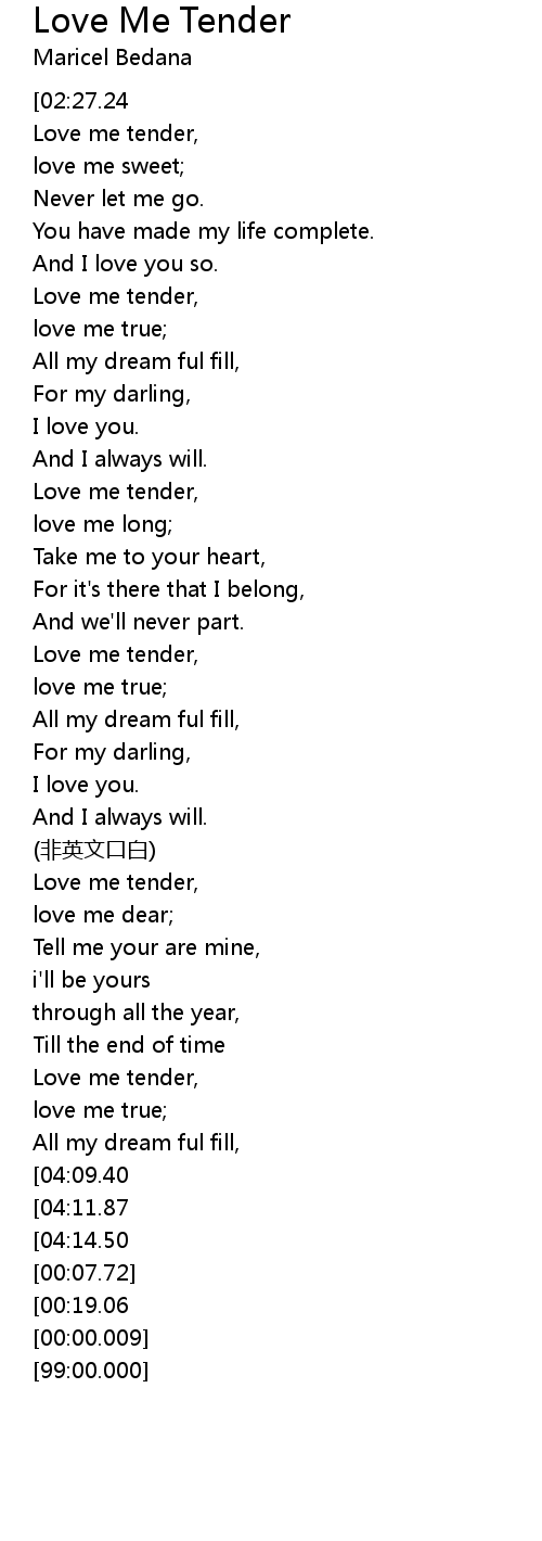 | [04:42.97][02:27.24][00:01.09] | wáng lì hóng Love Me Tender |