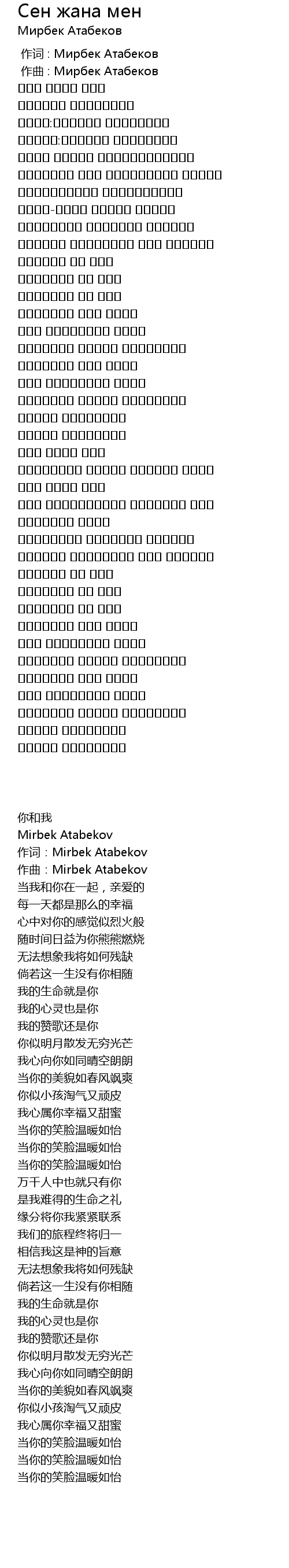 | 歌曲 | Сен жана мен |