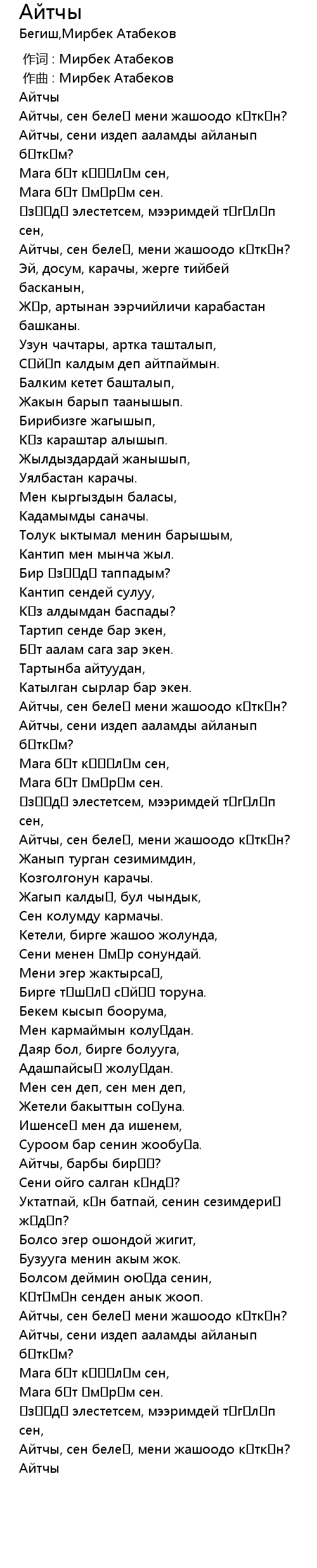 作词 : Мирбек Атабеков |