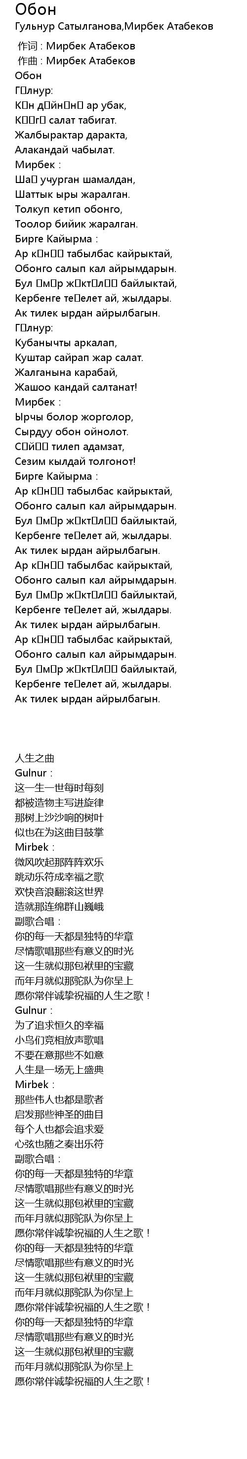 | [00:00.000] | 作词 : Мирбек Атабеков |