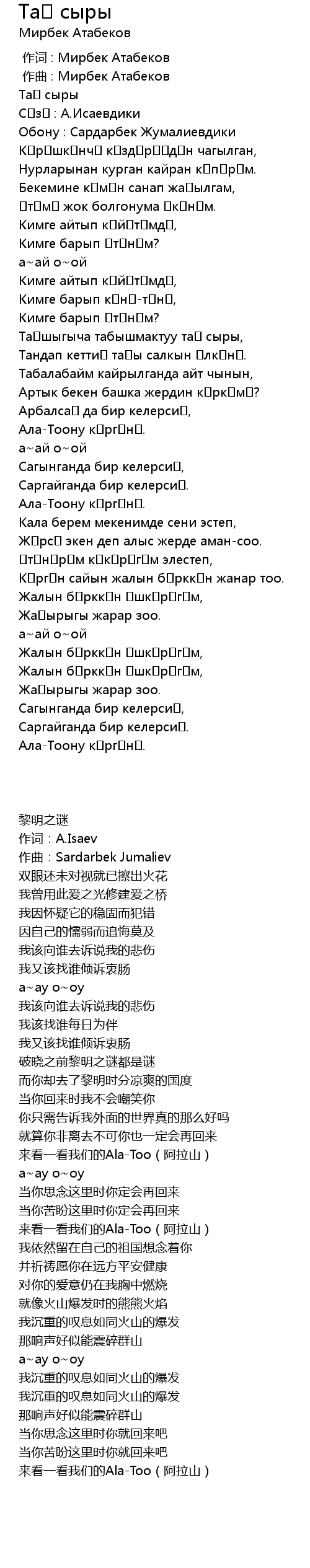 | [00:00.000] | 作词 : Мирбек Атабеков |