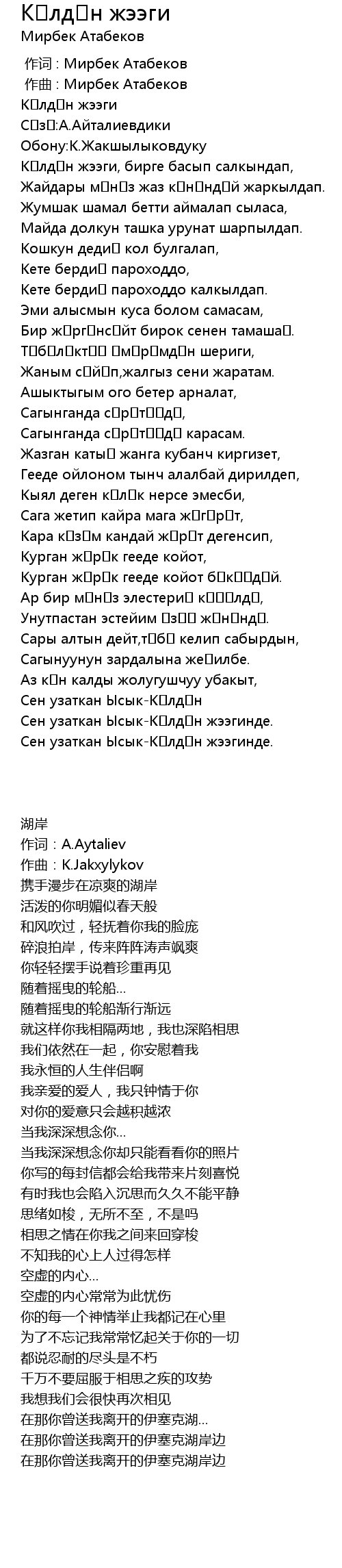 | [00:00.000] | 作词 : Мирбек Атабеков |