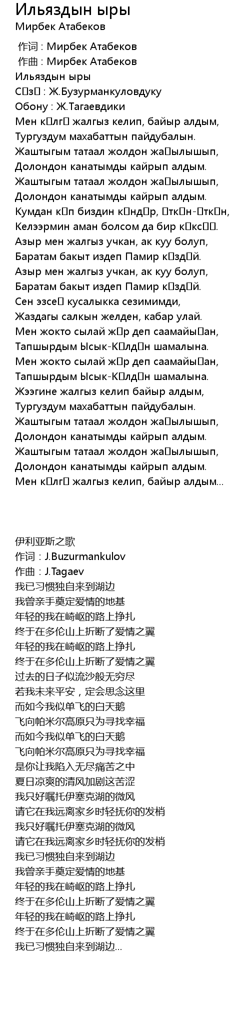| [00:00.000] | 作词 : Мирбек Атабеков |