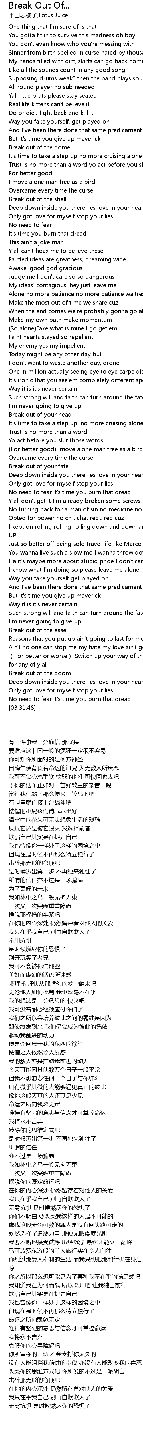 | [00:44.49] | 反抗它还是被它毁灭 我选择前者 |