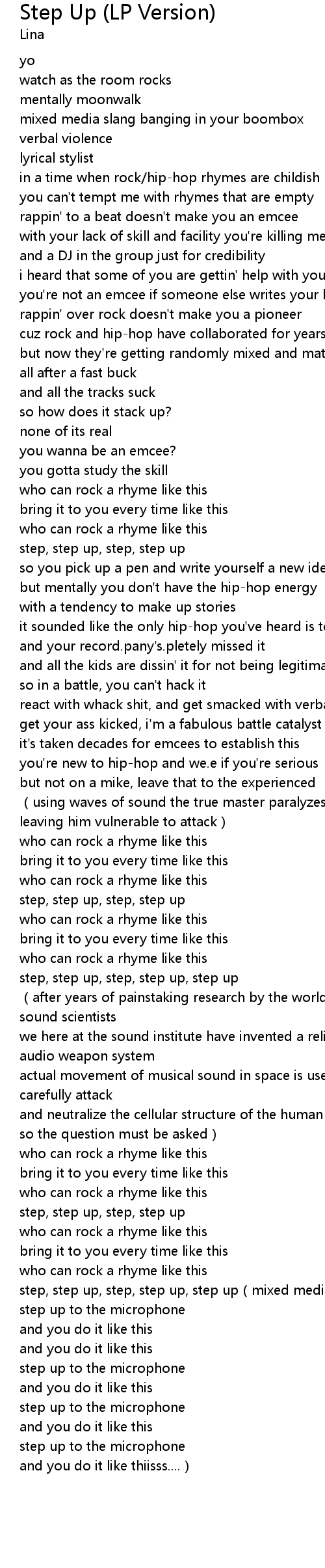 | [03:07.64] | step, step up, step, step up, step up mixed media |