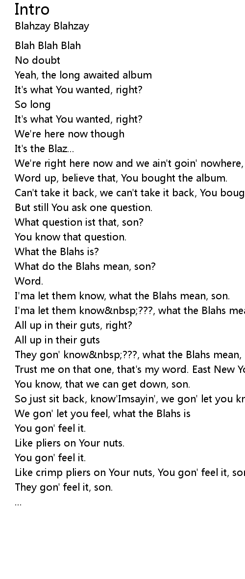 They gon' know ???, what the Blahs mean, son, that's my word! |