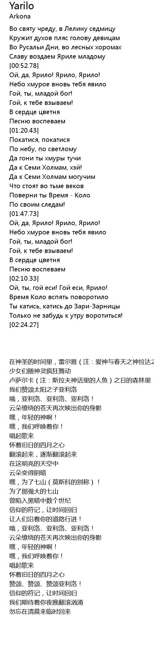 | [01:57.50] | Ой, да, Ярило! Ярило, Ярило! |