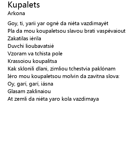 | 歌曲 | Kupalets |