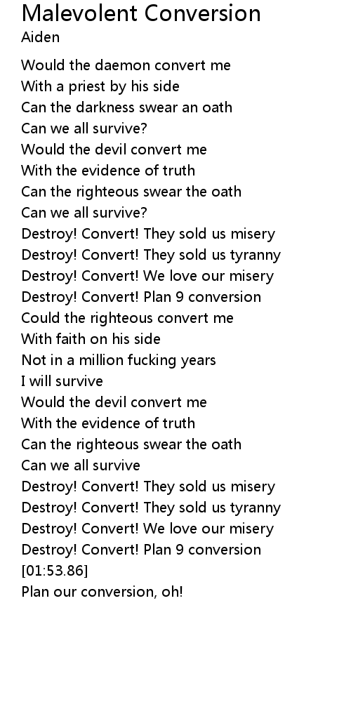 | [00:58.42] | Destroy! Convert! They sold us tyranny |