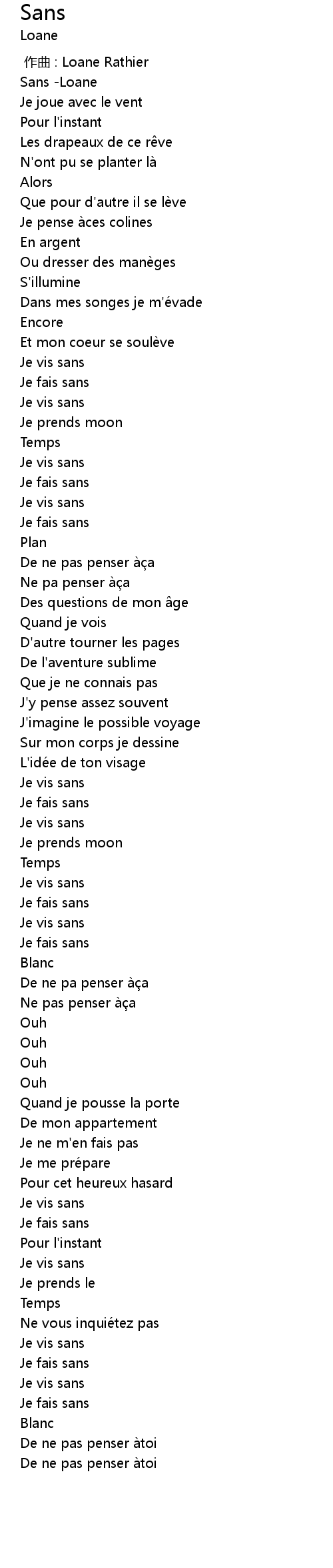 | [00:00.000] | zuò qǔ : Loane Rathier |