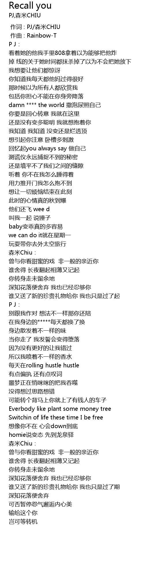 | [00:00.000] | 作词 : PJ/森米CHIU |